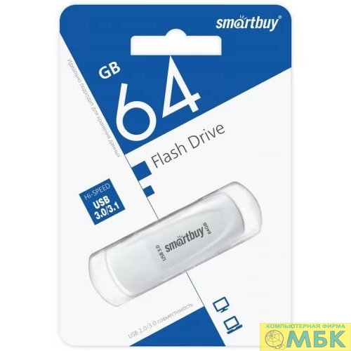 Smartbuy USB Drive 64GB Scout White (SB064GB3SCW) UFD 3.0/3.1