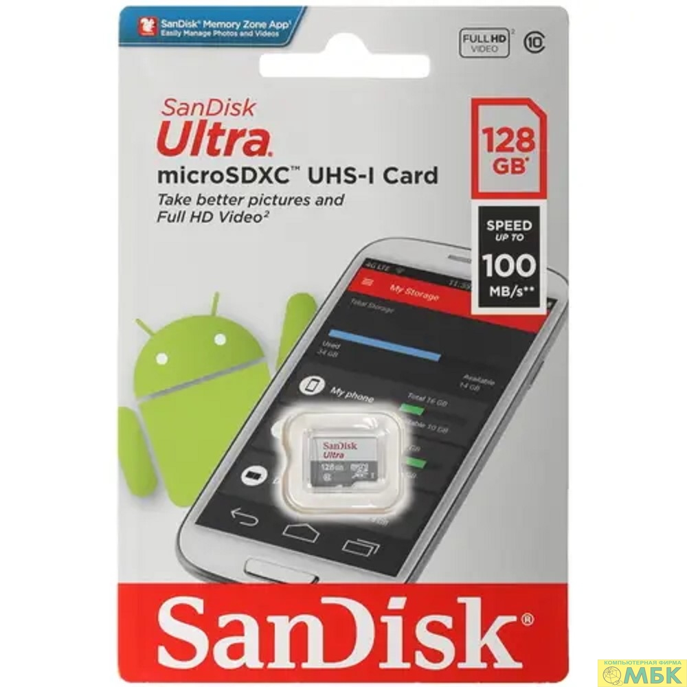 Micro SecureDigital 128Gb SanDisk Ultra® Class 10 UHS-I [SDSQUNR-128G-GN6MN]
