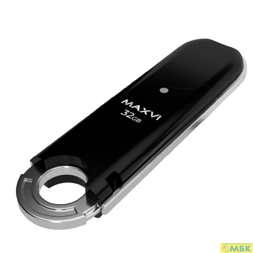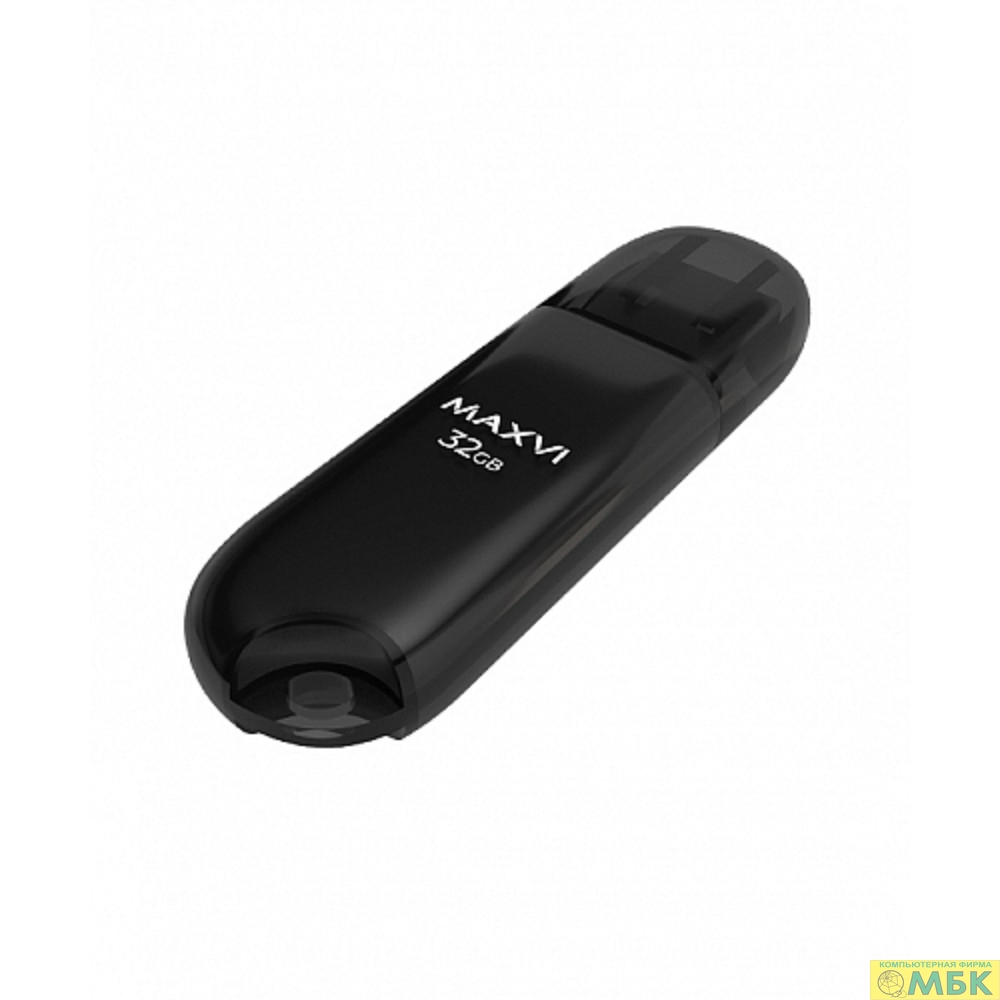 Maxvi USB Drive 32GB P2 32GB black, монолит с колпачком, ABS пластик, USB 2.0