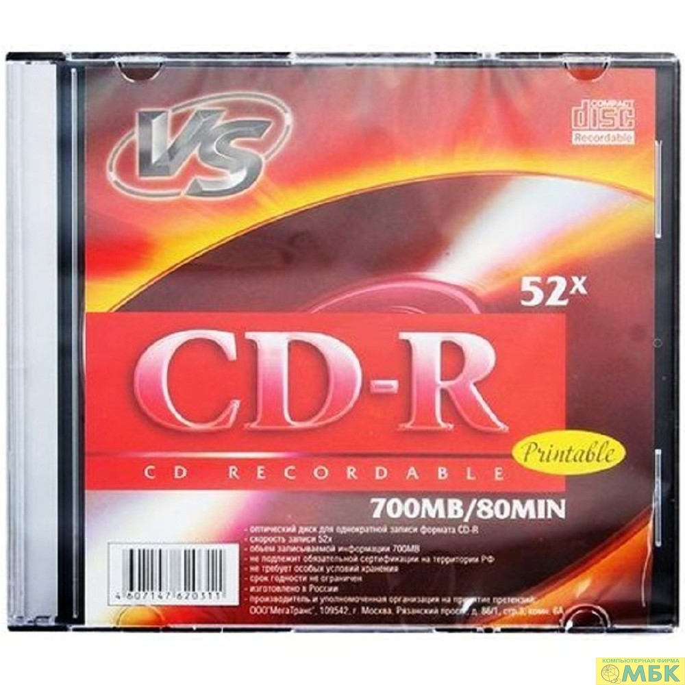 VS CD-R 80 52x SL/5 Ink Print (отгрузка кратно 5 шт)(620311)