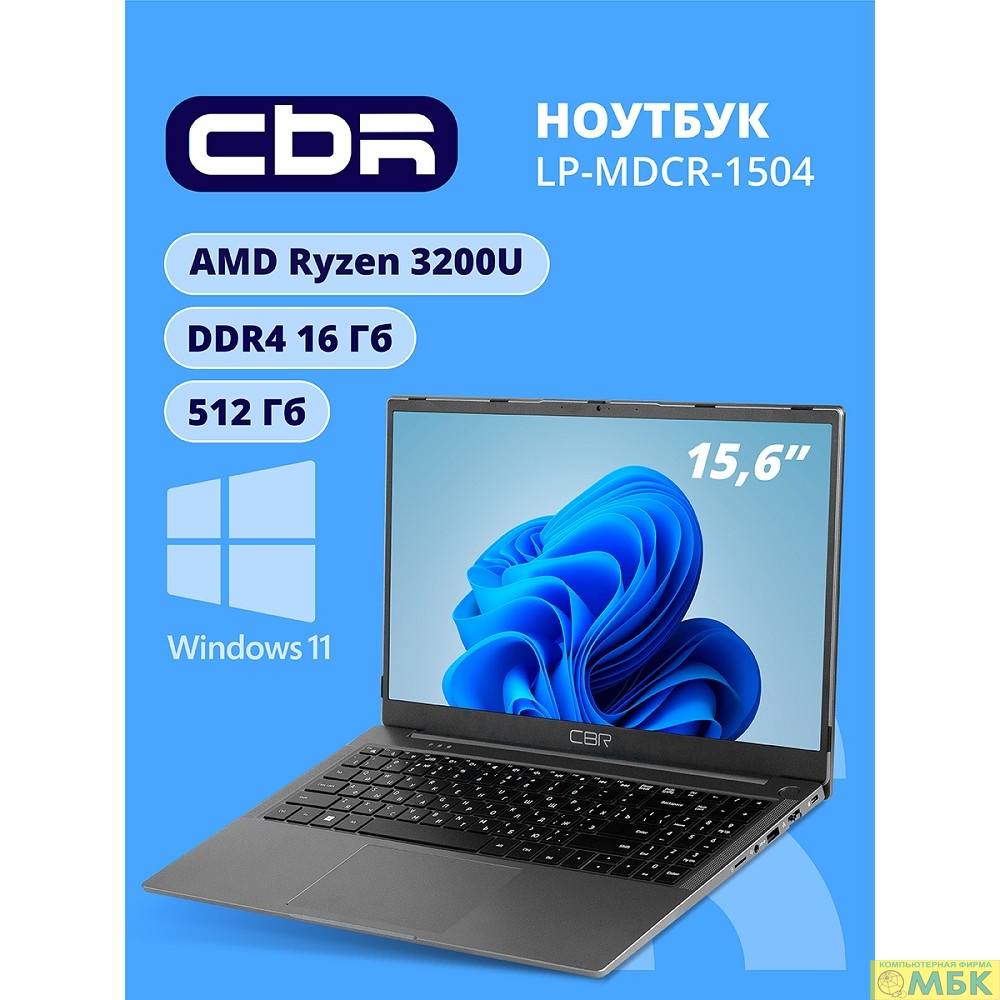 CBR LP-MDCR-1504 15.6" FHD IPS (AMD Ryzen 3 3200U(2.6GHz) /16Gb DDR4 3200MHz / 512Gb SSD PCIe / AMD Radeon RX Vega 3 / RJ45 / Windows 11 Pro /5000 mAh /пластик)