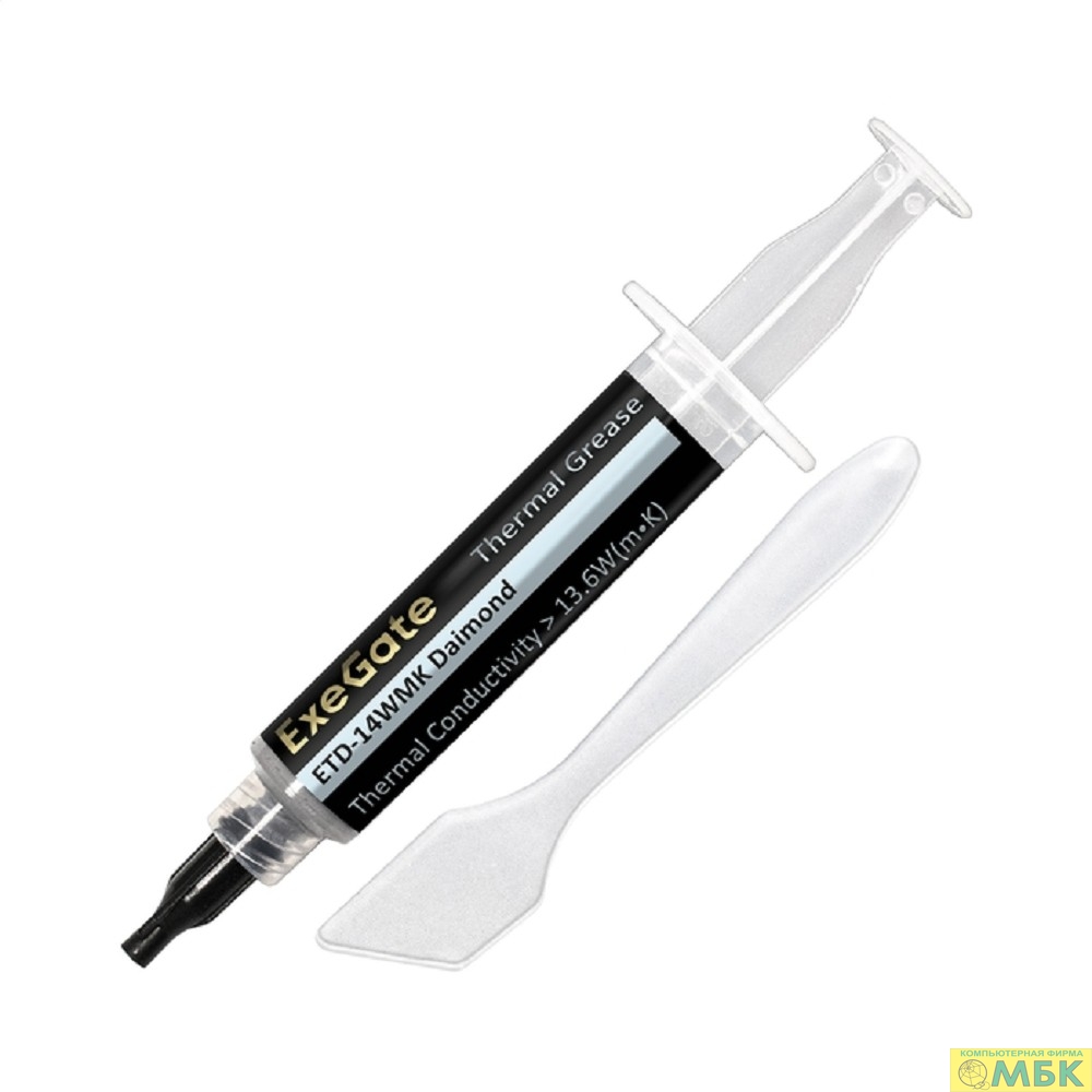 Exegate EX293371RUS Термопаста ExeGate ETD-14WMK Daimond (13,6 Вт/(м•К), 6г, шприц с лопаткой)