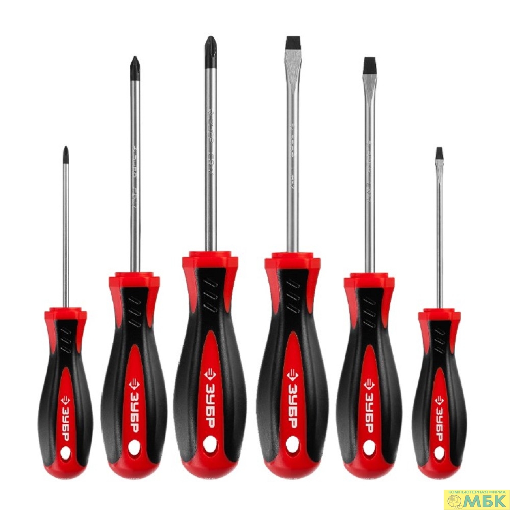 Набор: Отвертки слесарные ЗУБР "МАСТЕР" 25066, Cr-V сталь, эргономичная двухкомпонентная рукоятка, магнитный наконечник, в коробке, 6 предметов [25066]