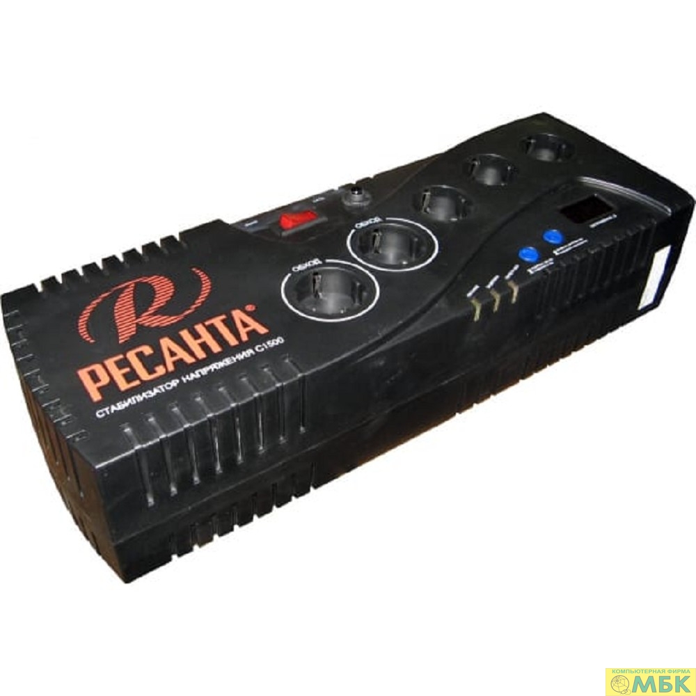 Ресанта С-1500 63/6/33 (16687) Стабилизатор {5 розеток -(3/2), 1000 Вт, 220В±8% + защита RJ11, Вес 3,8 кг}
