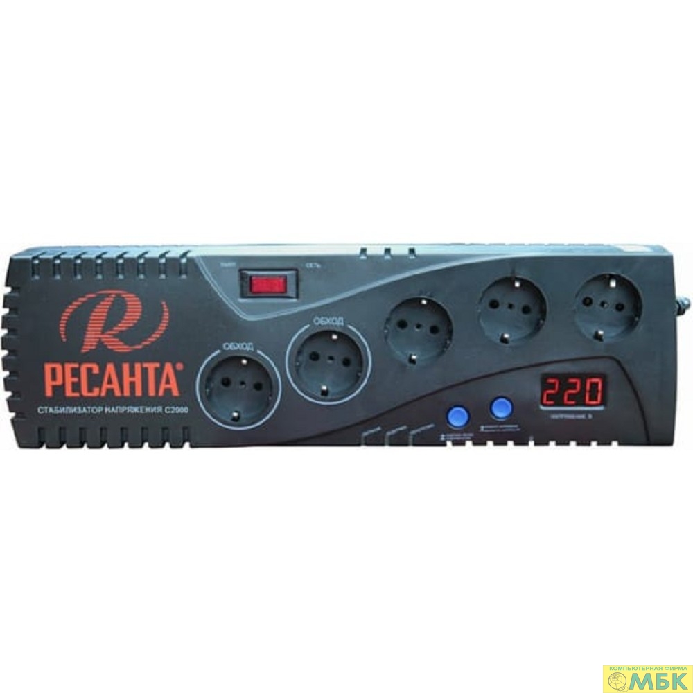 Ресанта С-2000 63/6/34 (16694) Стабилизатор {5 розеток -(3/2), 2000 Вт, 220В±8% + защита RJ11, Вес 4,2 кг}