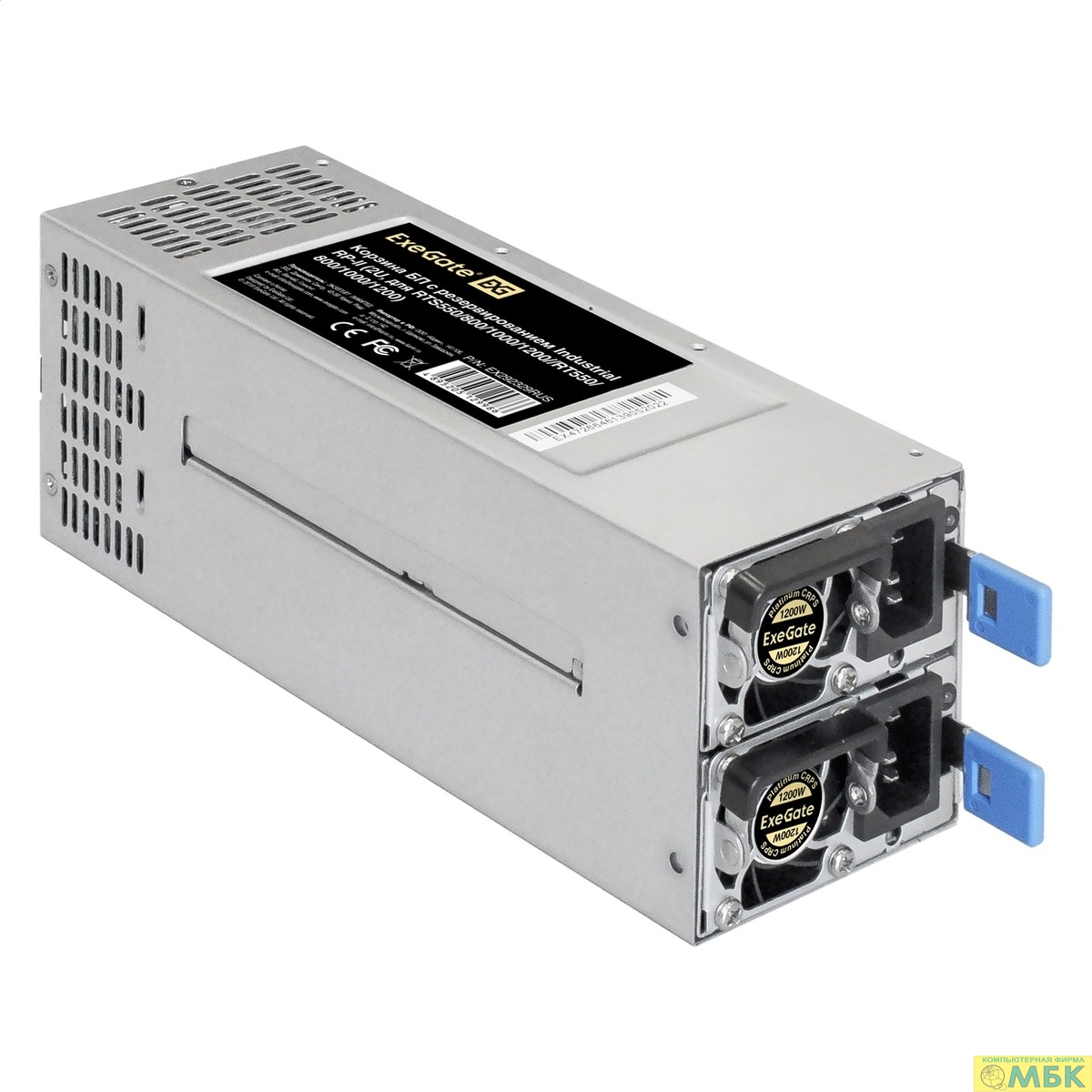 Exegate EX292324RUS Серверный БП с резервированием 2U Redundant 2x1200W ExeGate Industrial-RTS1200 (APFC, КПД 94% (80 PLUS Platinum), 4 cm fan, 24pin, 2x(4+4)pin, 2PCIe, 2SATA, 6IDE, Cable Management)