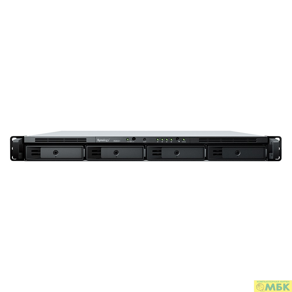 Synology RS822+ Сетевое хранилище (1U,4x3.5"/2.5" HDD, 4-core 2.2 GHz, 2 GB DDR4 ECC SODIMM, 4xGbE LAN)