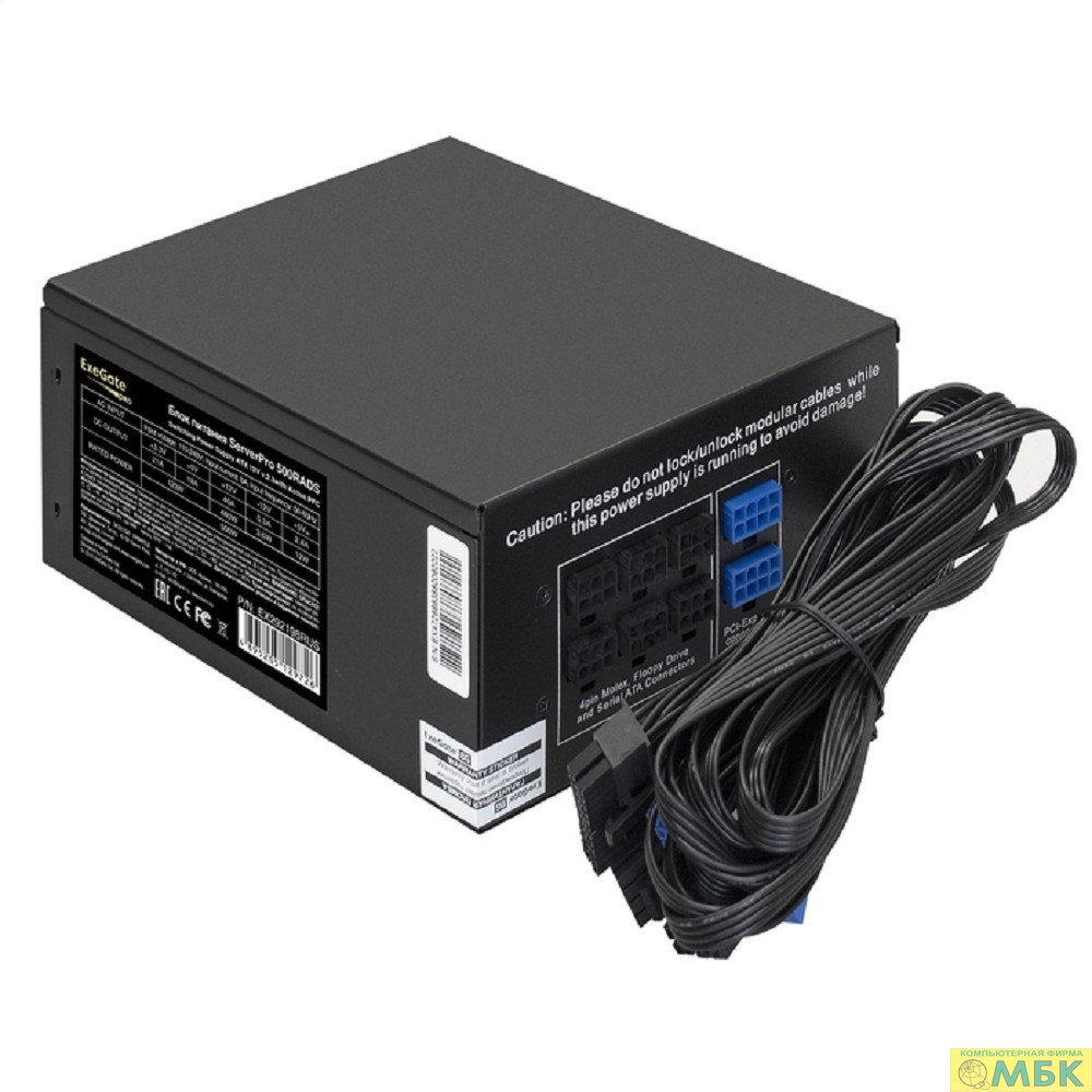 Exegate EX292198RUS Серверный БП 500W ExeGate ServerPRO-500RADS (ATX, for 3U+ cases, APFC, КПД 80% (80 PLUS), 14cm fan, 24pin, (4+4)pin, PCIe, 5xSATA, 4xIDE, FDD, Cable Management, black)