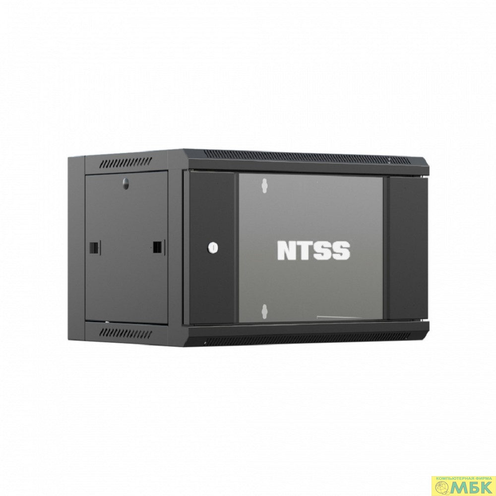 NTSS Шкаф настенный телекоммуникационный NTSS W 9U 600х600х500мм, 2 профиля 19, дверь стеклянная, боковые стенки съемные, задняя стенка, разобранный, черный RAL 9005 NTSS-W9U6060GS-BL