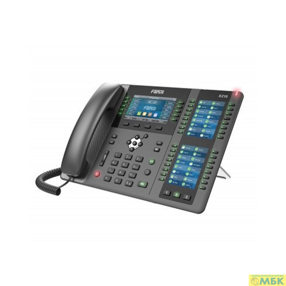 Fanvil X210 20 линии SIP, HD аудио,имеет цветной дисплей 4.3 дюймов 480x272, 3 ЖК дисплея, имеет 2 порта Gigabit LAN, питание PoE, 106 DSS/BLF ключи, WIFI, Bluetooth