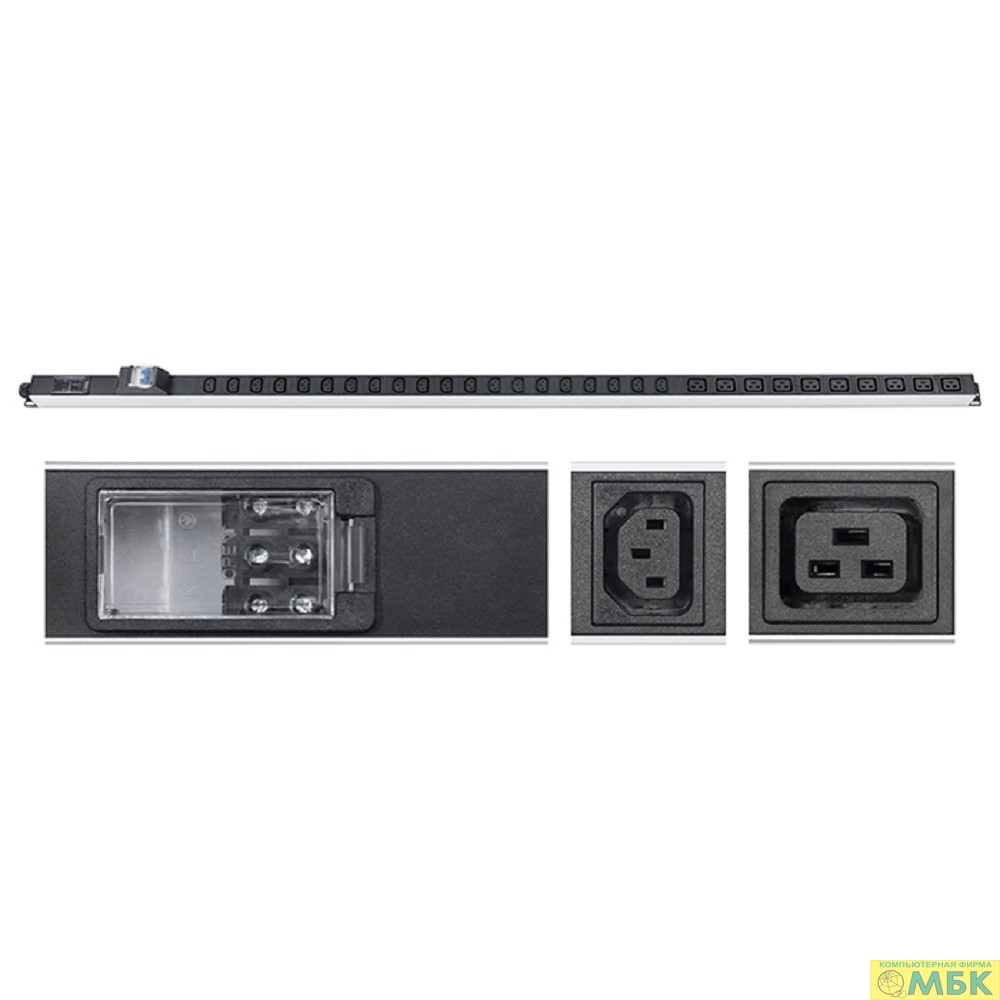 Cabeus PDU-32-10C19-20C13-B-T Блок розеток для 19" шкафов, вертикальный, 10 розеток IEC 320 C19, 20 розеток IEC 320 C13, 32А, автомат защиты, алюминиевый корпус, клеммная колодка