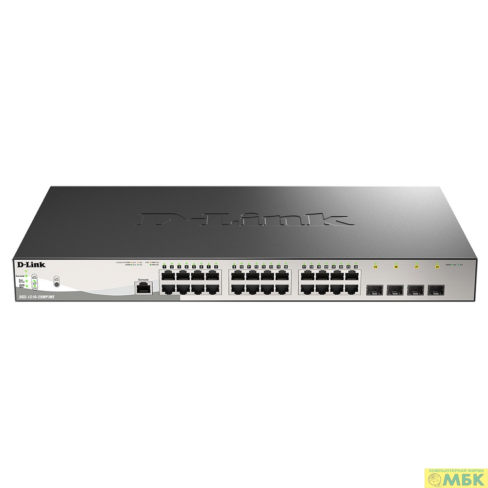 D-Link DGS-1210-28MP/ME/B2A PROJ Управляемый L2 коммутатор с 24 портами 10/100/1000Base-T и 4 портами 1000Base-X SFP (24 порта PoE 802.3af/at, PoE-бюджет 370 Вт)