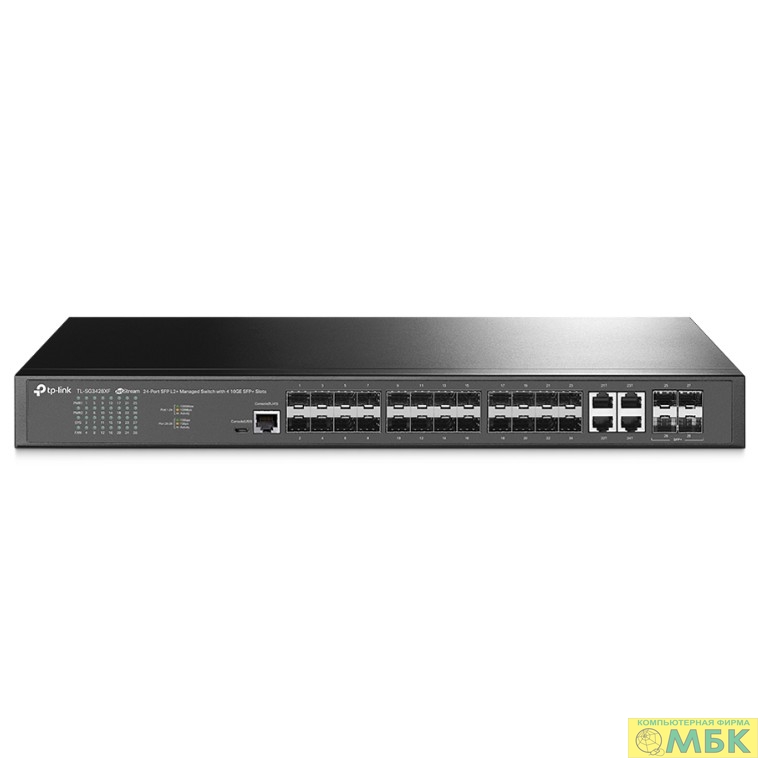 TP-Link SG3428XF Управляемый коммутатор JetStream уровня 2+ с 20 гигабитными портами SFP, 4 портами SFP+ и 4 комбинированными портами SFP/RJ45