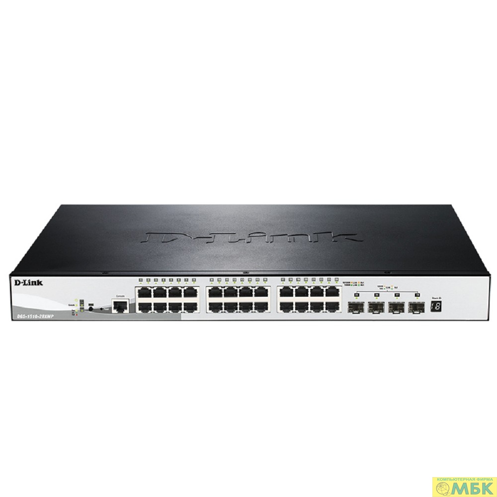 D-Link DGS-1510-28XMP/A1A PROJ Управляемый L2+ стекируемый коммутатор с 24 портами 10/100/1000Base-T и 4 портами 10GBase-X SFP+ (24 порта PoE 802.3af/at, PoE-бюджет 370 Вт)