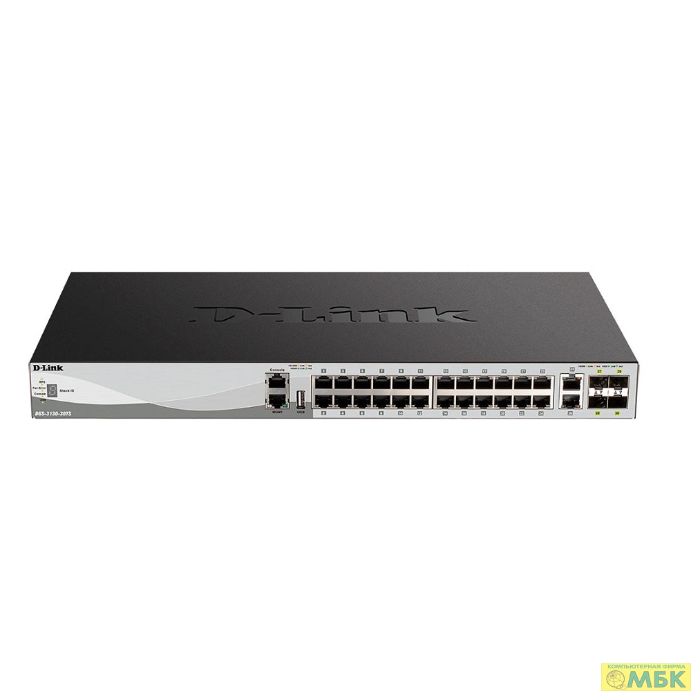 D-Link DGS-3130-30TS/B1A PROJ Управляемый L3 стекируемый коммутатор с 24 портами 10/100/1000Base-T, 2 портами 10GBase-T и 4 портами 10GBase-X SFP+