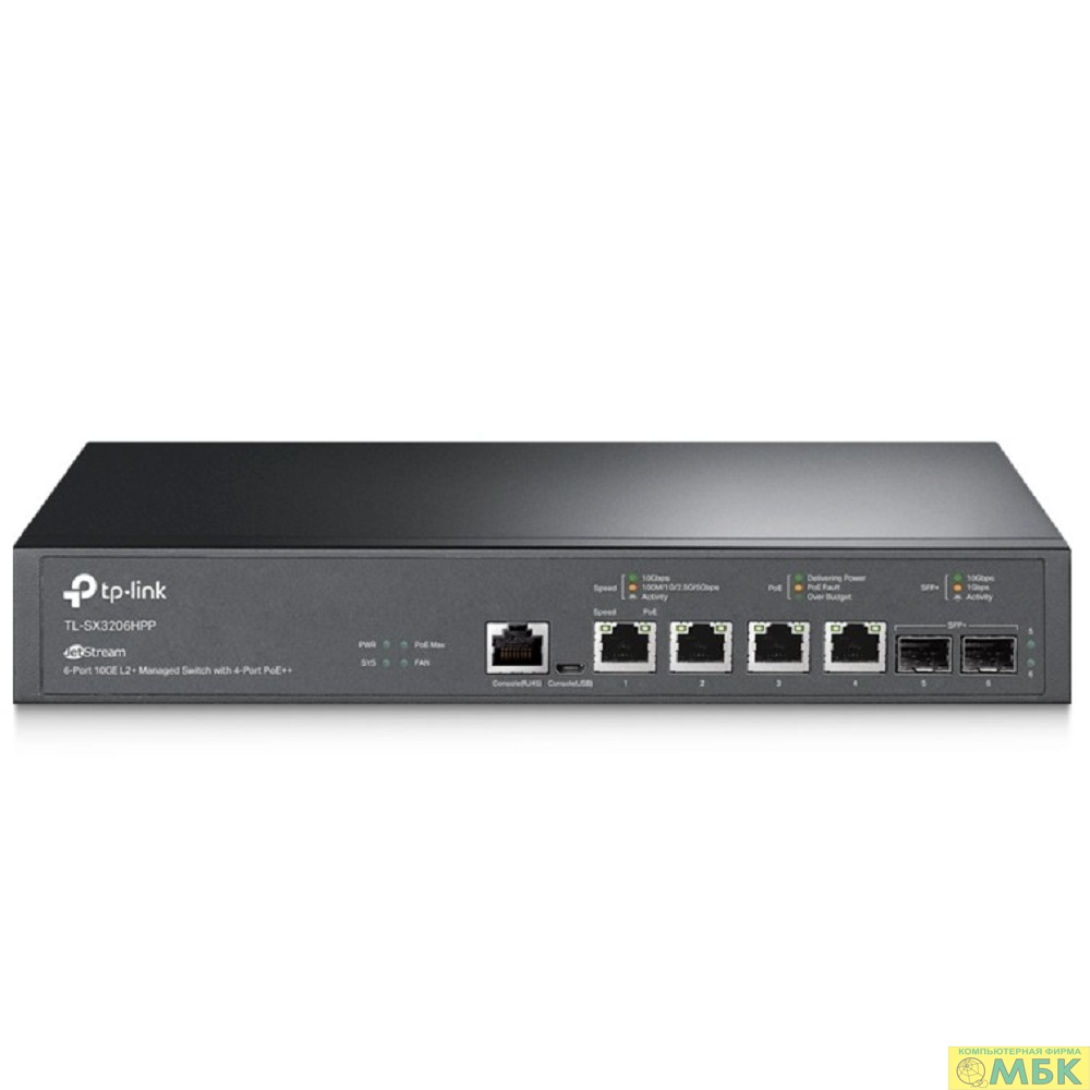 TP-Link SX3206HPP Управляемый коммутатор JetStream уровня 2+ c 4 портами PoE++ 10 Гбит/с и 2 портами SFP+