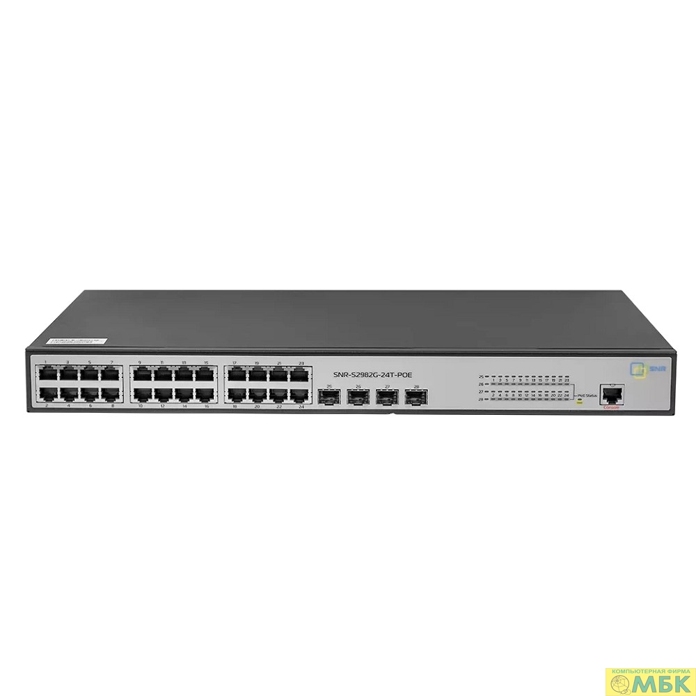 SNR SNR-S2982G-24T-POE Управляемый гигабитный PoE коммутатор уровня 2, 24 порта 10/100/1000Base-T, 4 порта 100/1000Base-X (SFP), бюджет PoE 185 Вт, встроенный БП ~220V AC