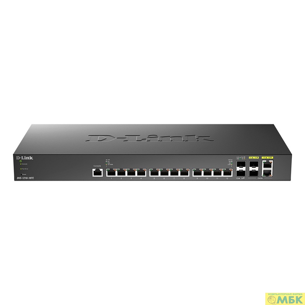 D-Link DXS-1210-16TC/B1A PROJ Настраиваемый L2+ коммутатор с 12 портами 10GBase-T, 2 портами 10GBase-X SFP+ и 2 комбо-портами 10GBase-T/SFP+