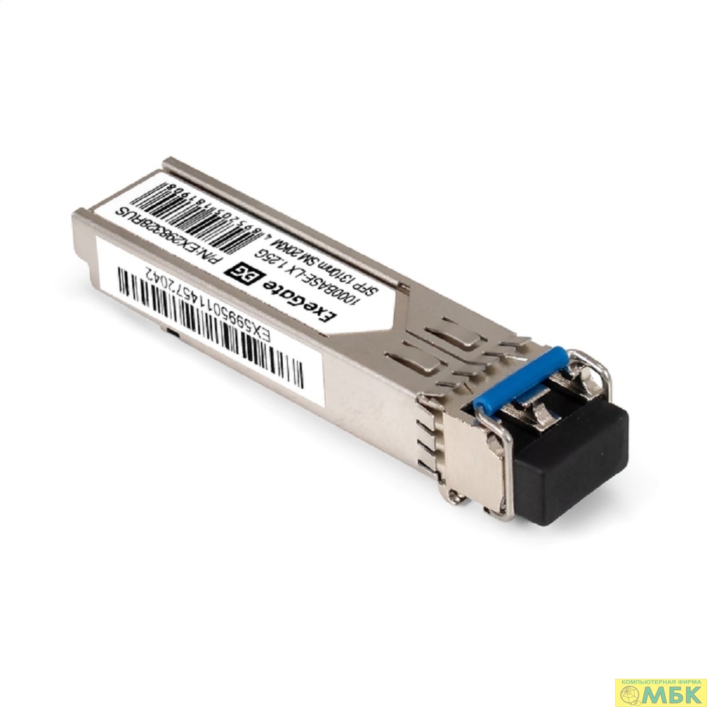 Exegate EX298328RUS Трансивер SFP EXT-1G-SM1310-LC2-20KM (1000Base-LX для одномодового оптического кабеля, 1,25 Гбит/с, Tx:1310/Rx:1310 нм, до 20 км, разъем Duplex LC)