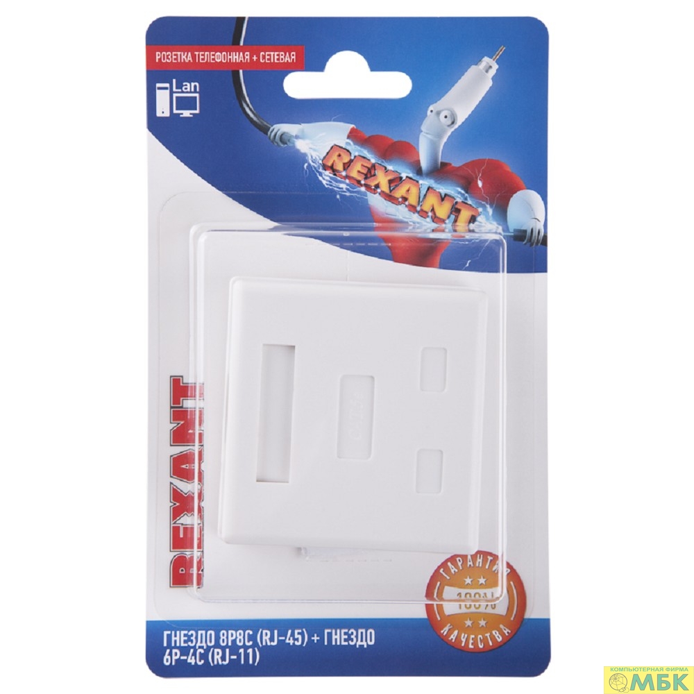 Rexant (06-0106-C) Розетка телефонная + сетевая LAN, на стену, (гнездо 8Р8С (RJ-45) + гнездо 6Р4С (RJ-11))