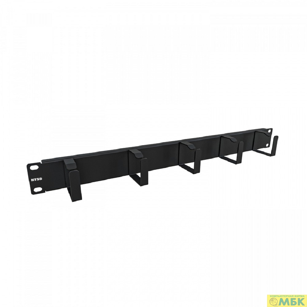 NTSS Организатор кабельный горизонтальный NTSS, крепление 19 1U, 5 колец глубиной 45мм, металл, черный RAL 9005 NTSS-HORG-1U-5(45)-BL