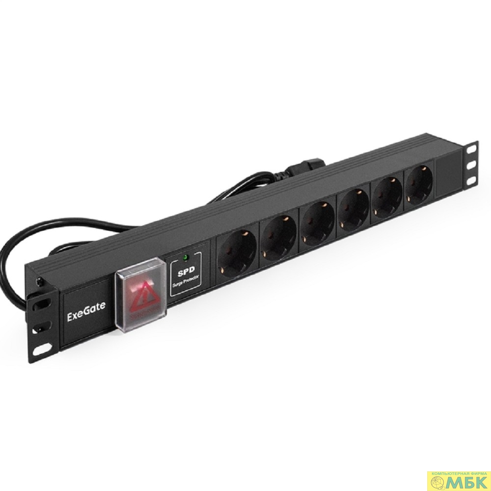 Exegate EX280832RUS Блок розеток ExeGate ServerPro PDU-19H607 Al-6S-C14-SW-SPD1, 19",1U,алюм, 6Schuko, С14, SPD1