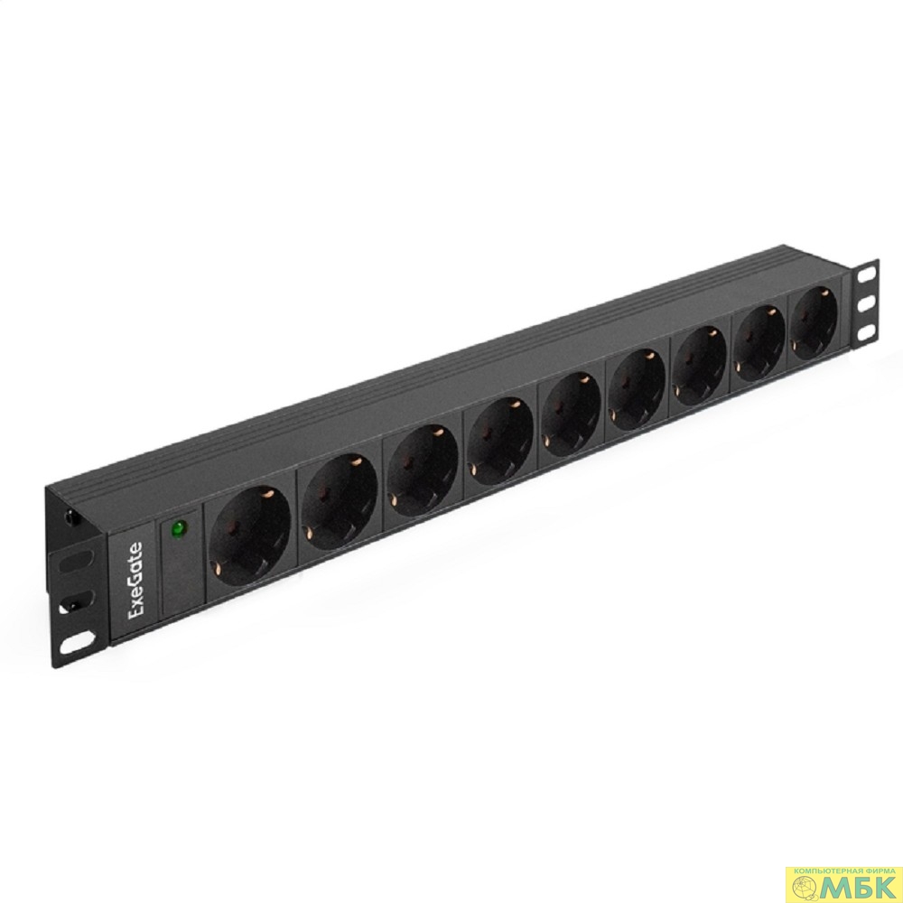 Exegate EX280853RUS Блок розеток ExeGate ServerPro PDU-19H907 Al-9S-C20, 19",1U,алюм, 9Schuko, С20