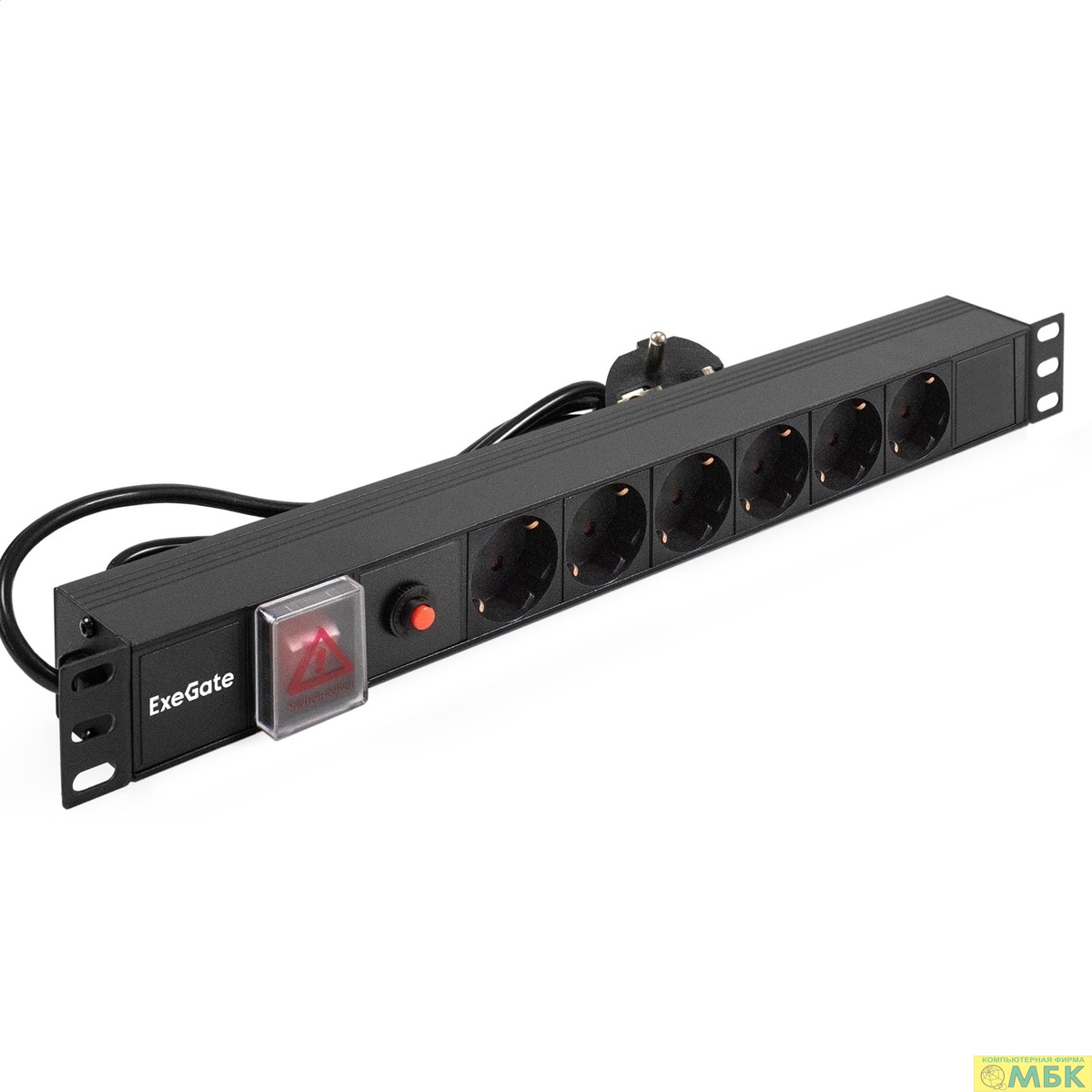 Exegate EX280831RUS Блок розеток ExeGate ServerPro PDU-19H606 Al-6S-EU2-SW-O, 19",1U,алюм, 6Sch, евровилка,2м,защ перегр