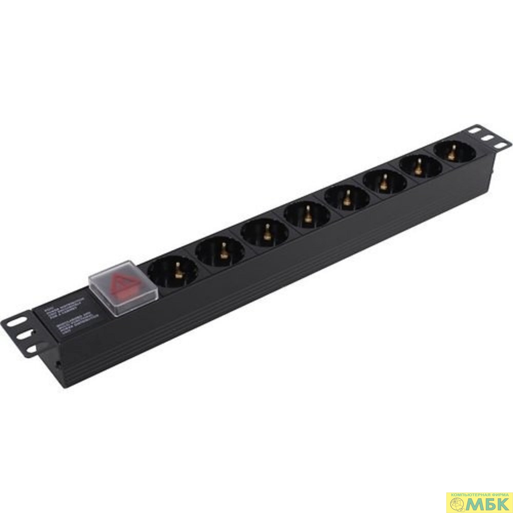 Exegate EX280840RUS Блок розеток ExeGate ServerPro PDU-19H801 Al-8S-C14-SW, 19", 1U, Алюм., 8Schuko, С14