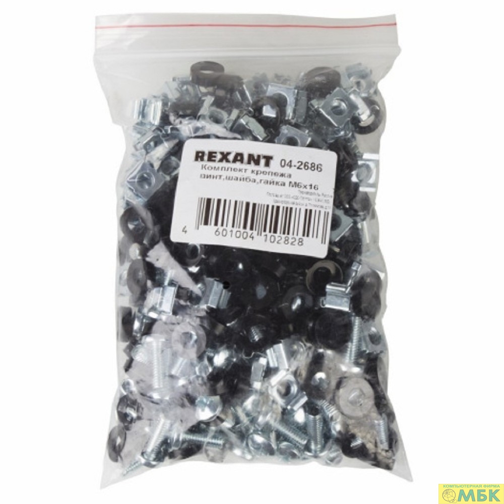 Rexant (04-2686) Комплект крепежа винт+шайба+гайка M6x16 (100 шт)