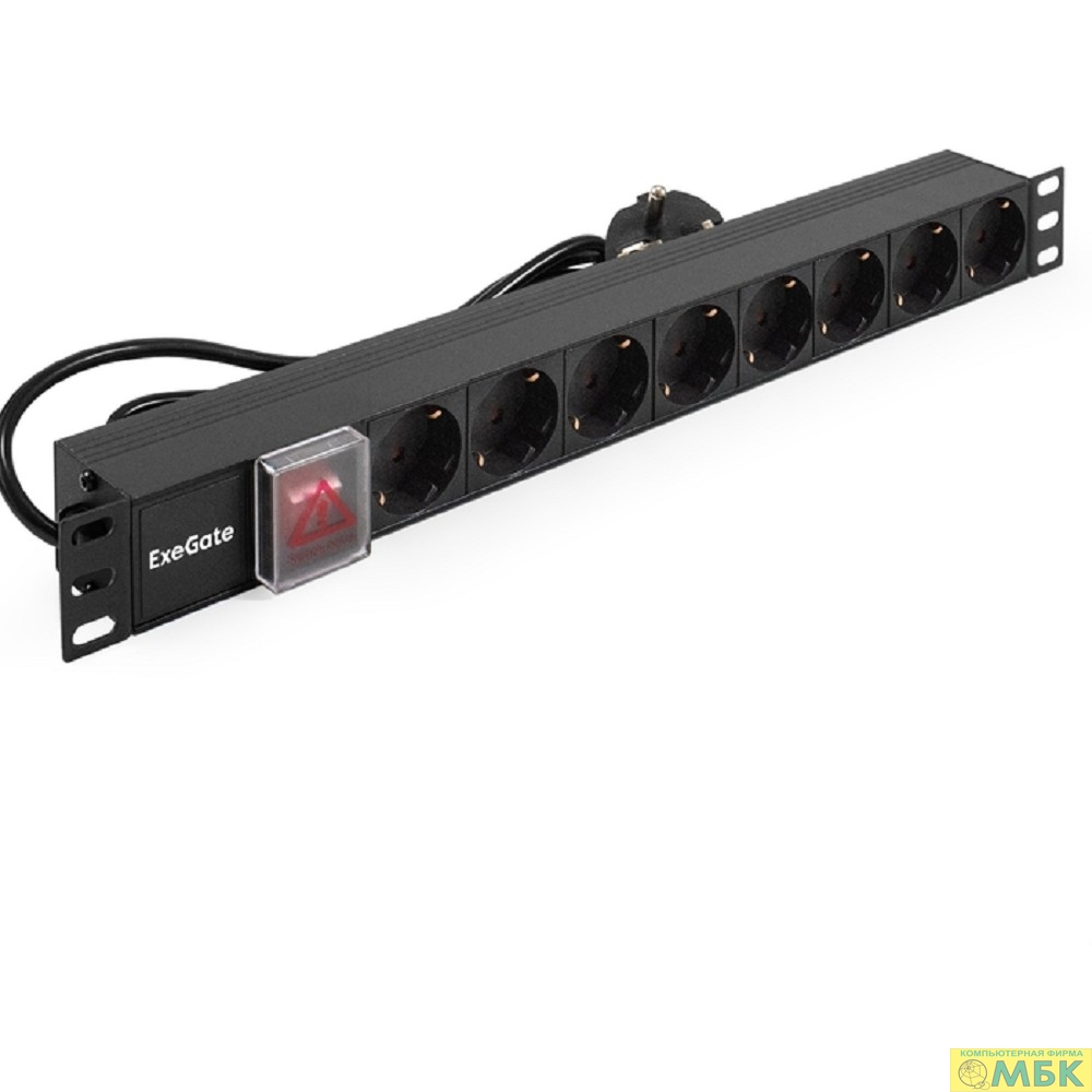 Exegate EX280848RUS Блок розеток ExeGate ServerPro PDU-19H902 Al-9S-EU1.8, 19",1U,алюм, 9Schuko, евровилка, 1.8м