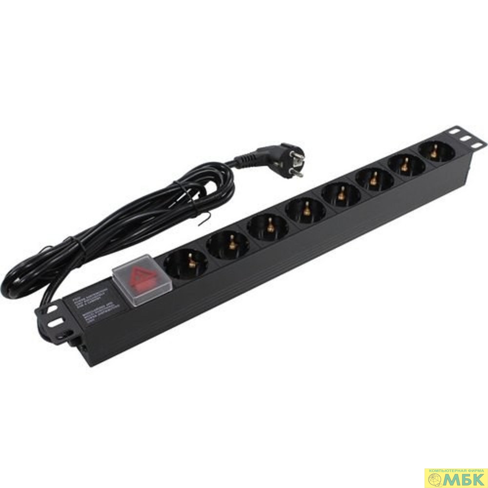 Exegate EX280844RUS Блок розеток ExeGate ServerPro PDU-19H805 Al-8S-EU3-SW, 19",1U,алюм, 8Schuko, евровилка, 3м