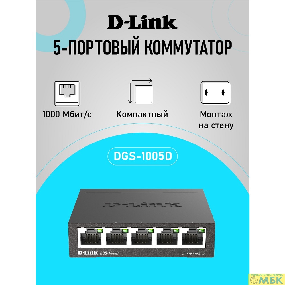 D-Link DGS-1005D/R1A Неуправляемый коммутатор с 5 портами 10/100/1000Base-T