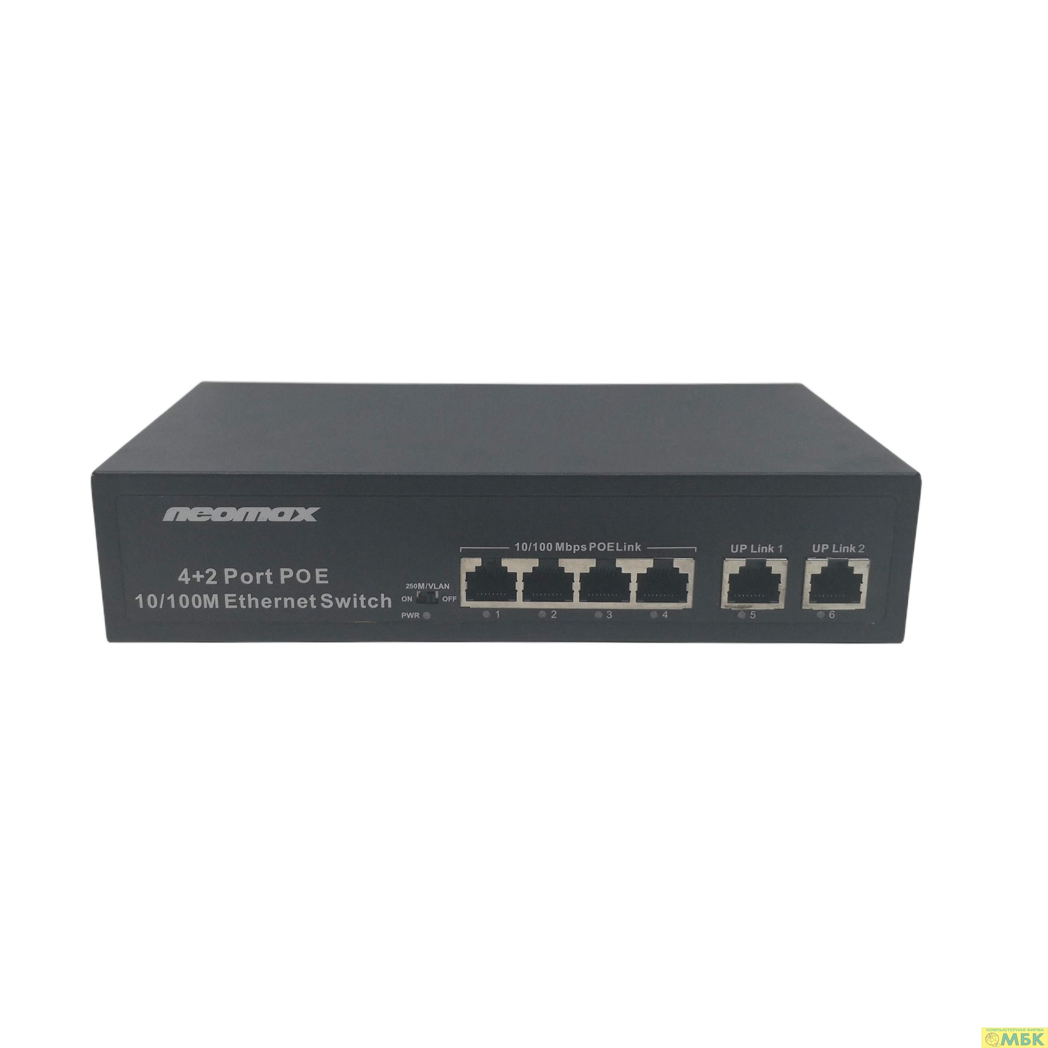NEOMAX неуправляемый коммутатор NMS-106PoE-100-S, 6 портов 100 Mbps, 4xPoE+, 110W, металл