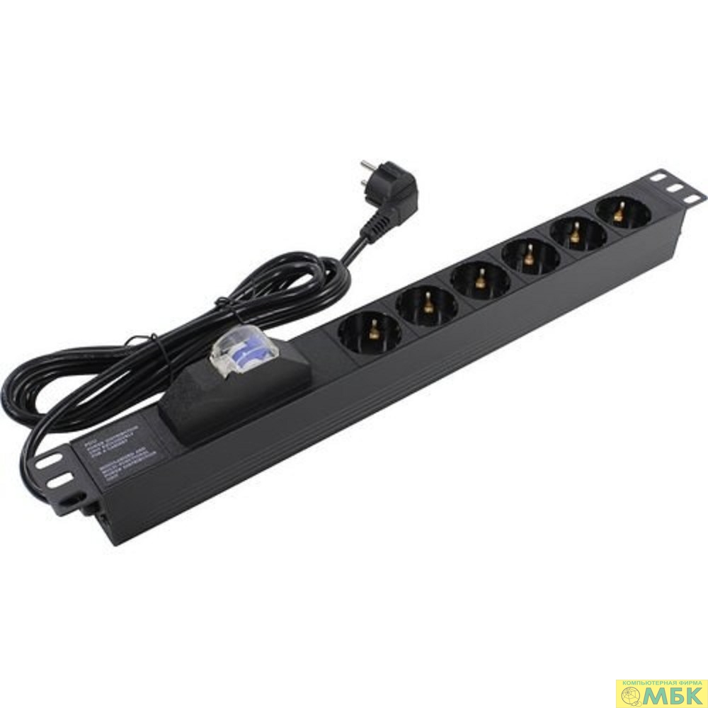 Exegate EX280835RUS Блок розеток ExeGate ServerPro PDU-19H610 Al-6S-EU2.5-1P, 19",1U,алюм,6Sch,евровилка,2.5м,защ перегр