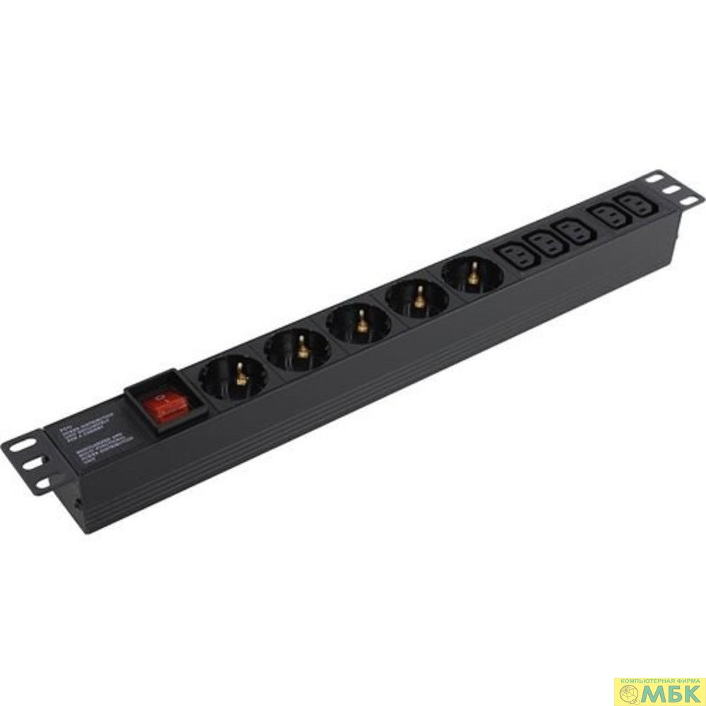 Exegate EX280866RUS Блок розеток ExeGate ServerPro PDU-19H008 Al-5C135S-C14-SW, 19",1U,алюм, 5 IEC 320 C13, 5Schuko, С14