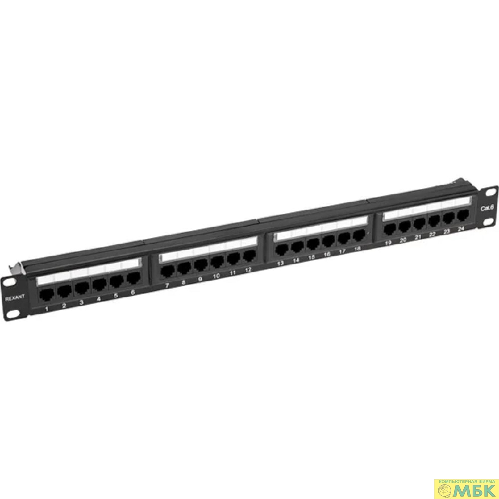 Rexant (02-0231) Панель коммутационная с кабельным органайзером 19", 1U, 24 порта, RJ-45, CAT 6, UTP PRO