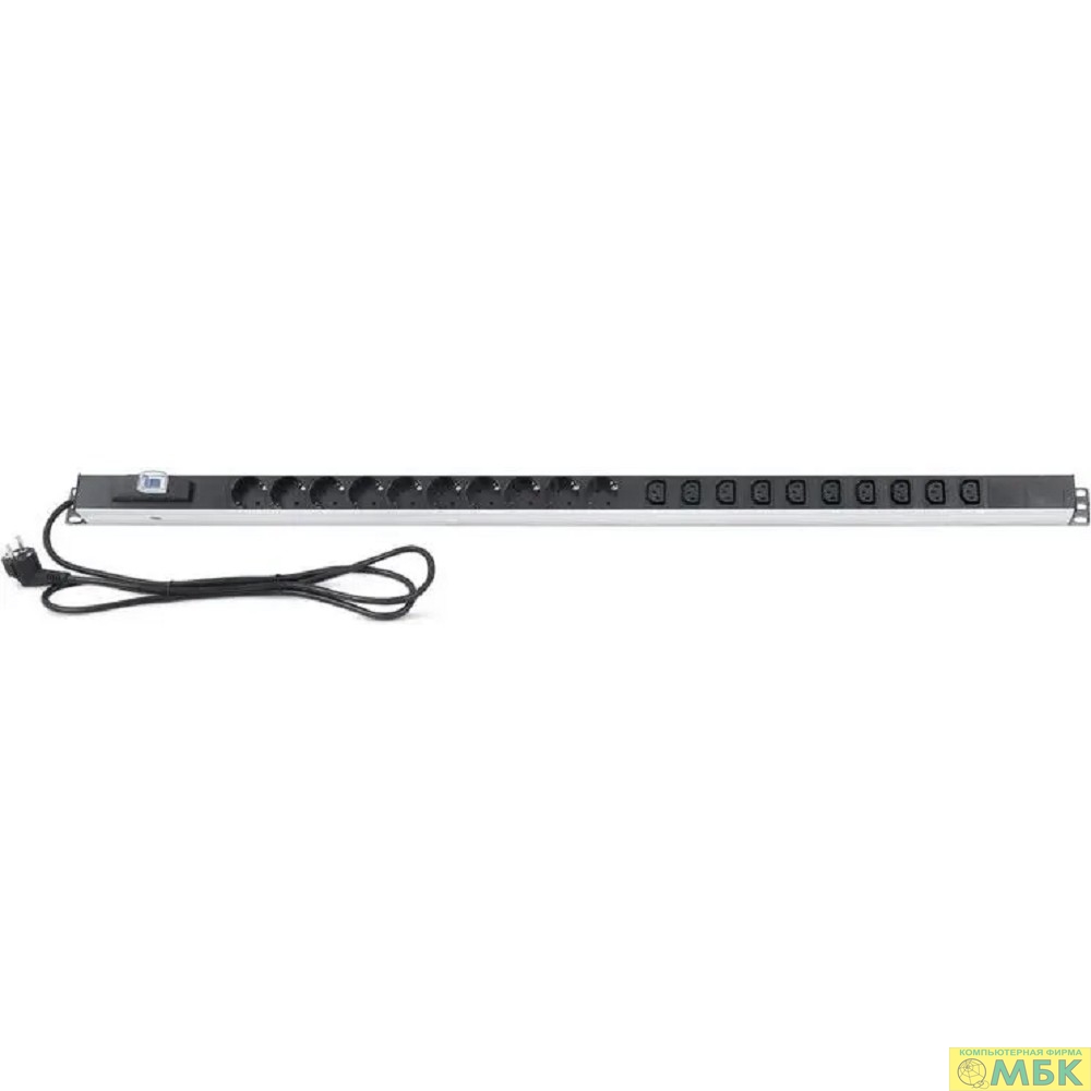 Rexant (04-2605) Блок распределения питания для 19" шкафов, верт, 10 розеток СЕЕ 7/4, 10 розеток C13, 16А, автомат защиты, алюм корп, шнур 2м, вилка СЕЕ 7/7