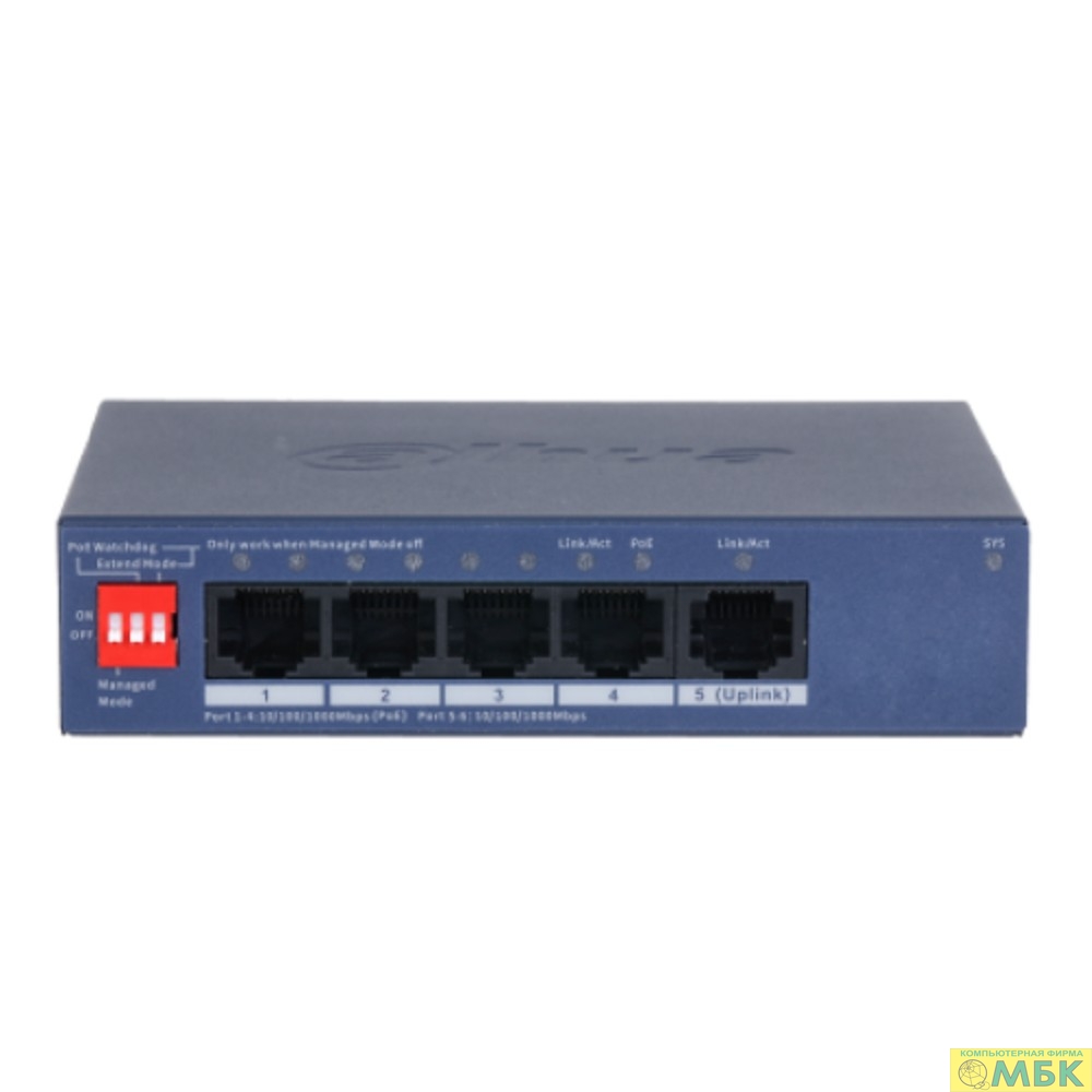 DAHUA DH-CS4005-4GT-36 4-портовый гигабитный PoE коммутатор с функцией облачного управления, 4xRJ45 1Gb, 1xRJ45 1Gb uplink, суммарно 40Вт