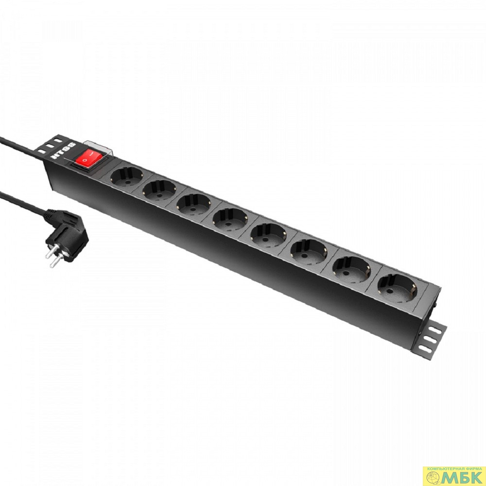 NTSS Блок розеток NTSS, 19", 1U, пластик, 1ф16А, 3.7кВт, (8) Schuko CEE , выкл. с подсв.и крыш., 1.8м каб., вил. Schuko NTSS-PDU-DA2032