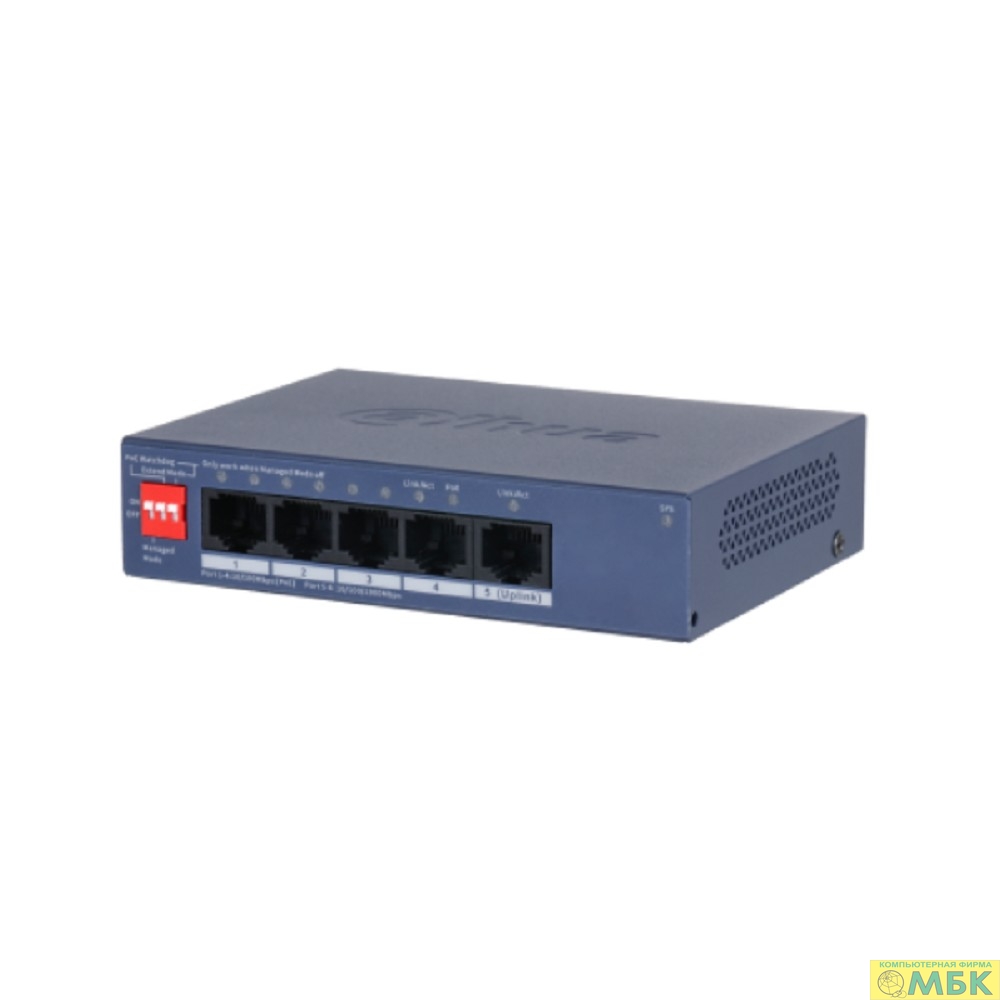 DAHUA DH-CS4005-4ET1GT-36 4-портовый PoE коммутатор управляемый 4 RJ45 10/100Мбит/с (PoE/PoE+), 1 RJ45 10/100/1000Мбит/с (uplink); до 40Вт