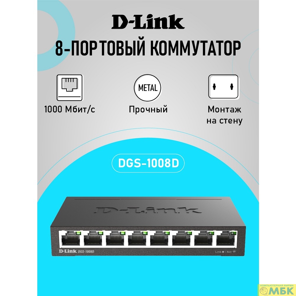 D-Link DGS-1008D/R1A Неуправляемый коммутатор с 8 портами 10/100/1000Base-T