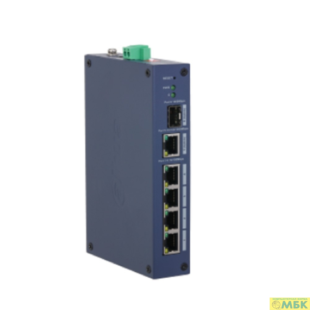 DAHUA DH-CHS4106-4ET 6-портовый коммутатор управляемый 4 RJ45 10/100Мбит/с, 1 RJ45 10/100/1000Мбит/с (uplink), 1 SFP 1000Мбит/с (uplink IP30, IK06; DIN-рейку