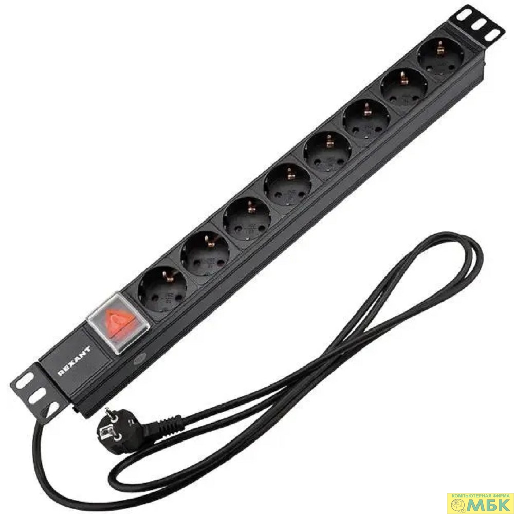 Rexant (04-0104-1) Блок распределения питания для 19" шкафов, горизонтальный, 8 розеток СЕЕ 7/4, 16A, выкл, алюм корп, шнур 2м, вилка СЕЕ 7/7