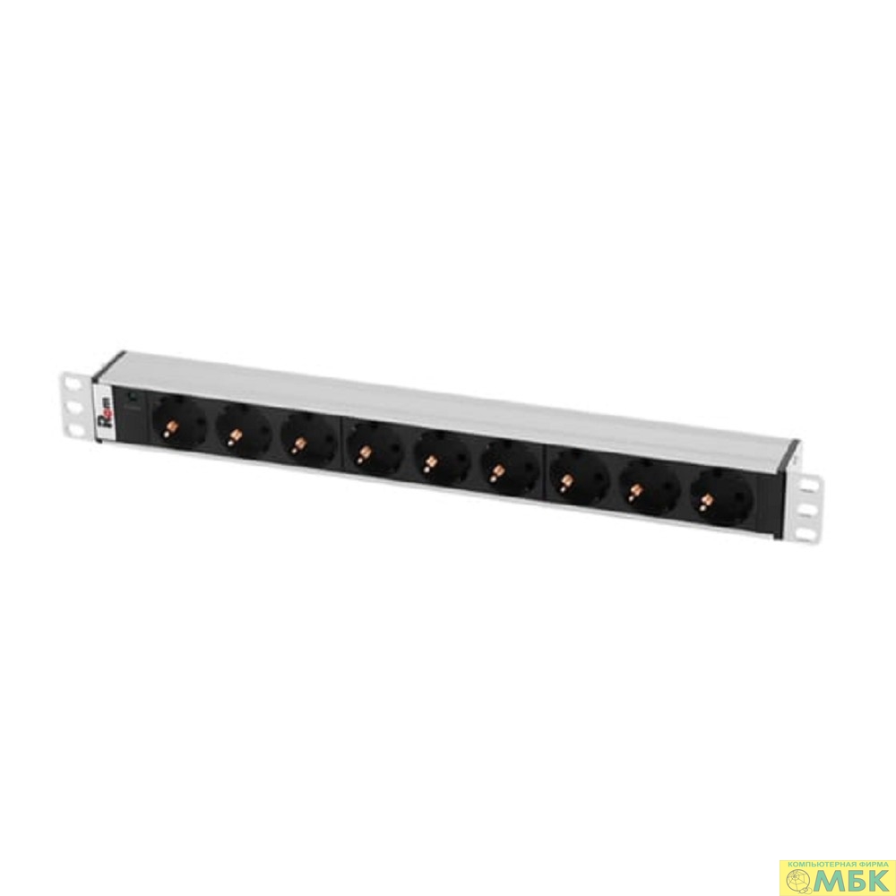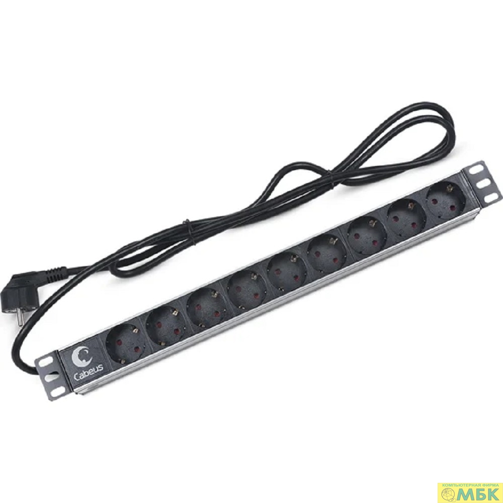 Cabeus PDU-9P-2EU Блок евророзеток для 19" шкафов, горизонтальный, 9 розеток, 16 A, без выключателя, шнур 2м, алюминиевый корпус, немецкий стандарт