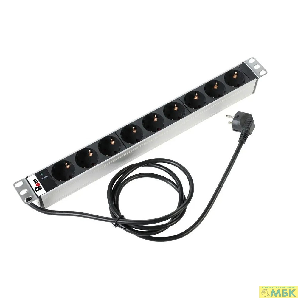 REM Блок розеток Rem-16 с инд., 9 Shuko, 16A, алюм., 19", шнур 3 м. (R-16-9S-I-440-3)