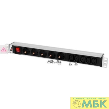 REM Блок розеток Rem-10 без шнура с выкл., 5 Schuko, 5 IEC 60320 C13, вход IEC 60320 C14, 10A, алюм., 19" (R-10-5S-5C13-V-440-Z)
