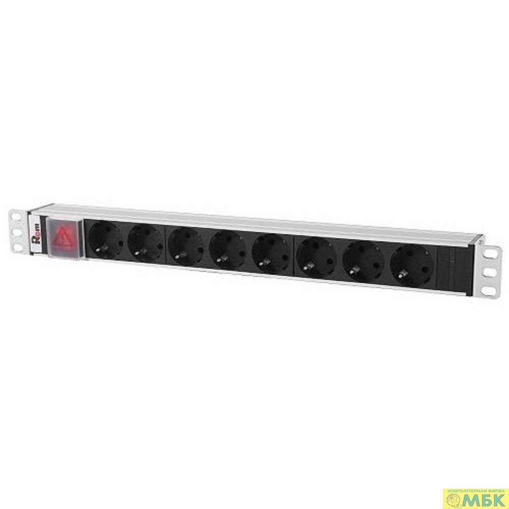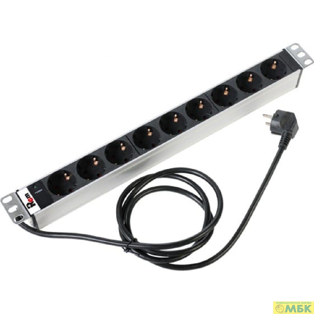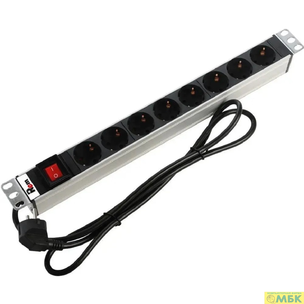 REM Блок розеток Rem-10 с выкл., 8 Schuko, 10 A, алюм., 19", шнур 1.8 м. 1,8 IEC 60320 C14 (R-10-8S-V-440-1.8)