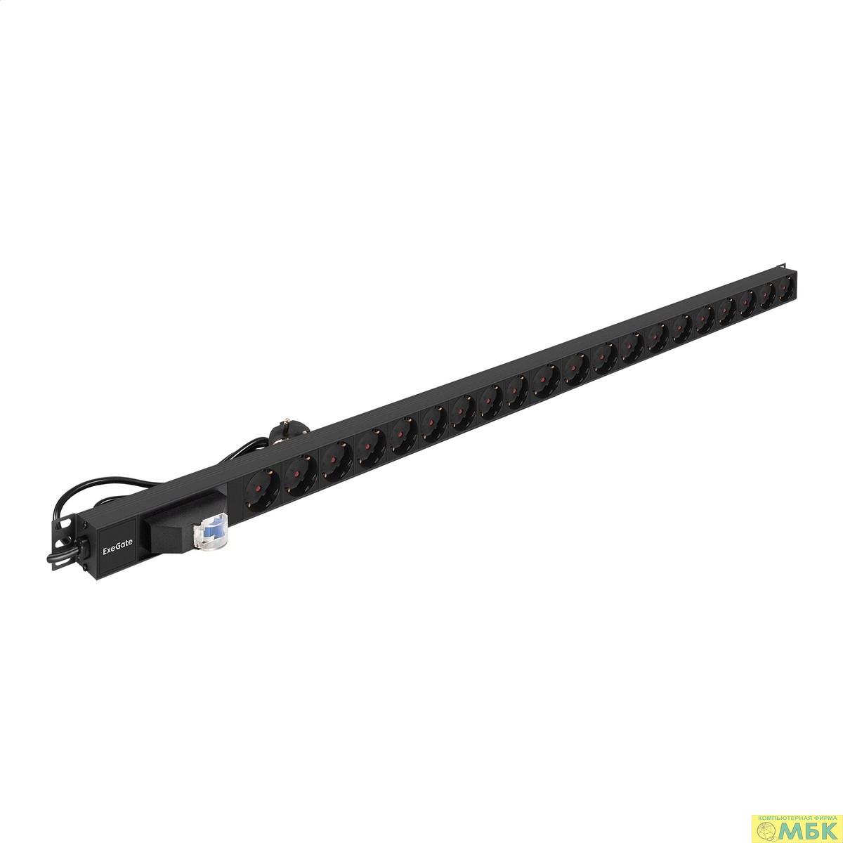 Exegate EX296173RUS Блок розеток вертикальный ExeGate ServerPro PDU-V201 Al-20S-EU3-1P (19", 1U, Алюминий,20 Schuko, кабель с евровилкой VDE-250V-16A-3*2.5mm2, 3 метра, автомат защиты, черный, RTL)