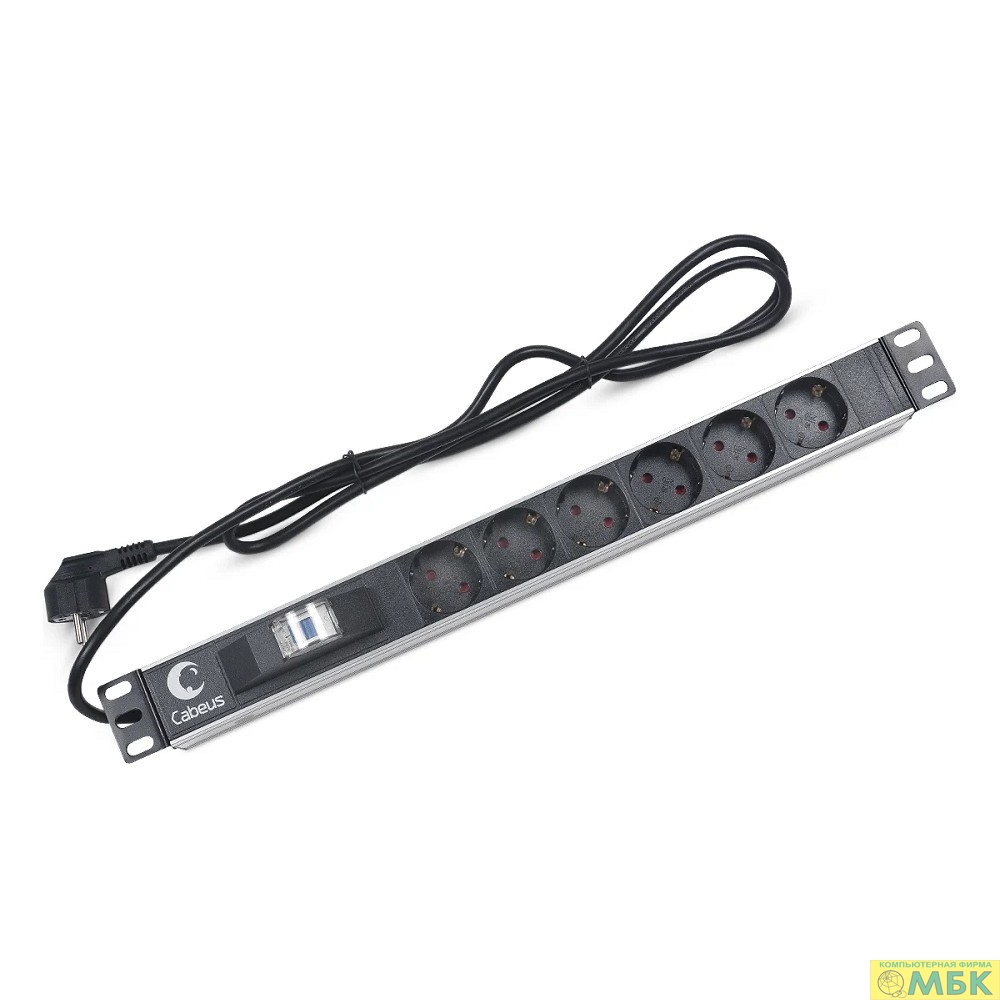 CABEUS PDU-6P-B-2EU БЛОК ЕВРОРОЗЕТОК ДЛЯ 19" ШКАФОВ, ГОРИЗОНТАЛЬНЫЙ, 6 РОЗЕТОК, АВТОМАТ ЗАЩИТЫ 16 A , ШНУР 2М, АЛЮМИНИЕВЫЙ КОРПУС, НЕМЕЦКИЙ СТАНДАРТ